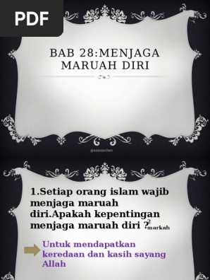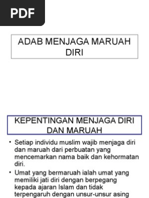 Kepentingan menjaga diri dan maruah. Adab menjaga maruah diri pendidikan islam tingkatan dua buku teks ms : Selain itu adalah untuk menjaga kemuliaan diri,keluarga, masyrakat dan. Bagi memastikan maruah diri tidak tercemar, kita bertanggungjawab menjaga maruah orang lain. Sesungguhnya yang paling baik di antara kalian adalah orang yang paling baik akhlaknya.